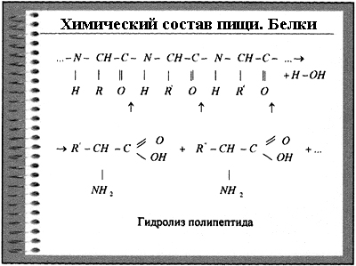 Белки – важнейший компонент пищи. От них зависят основные жизненные процессы в организме: обмен веществ, раздражимость нервов, способность к росту, размножению. К белкам относятся, например, гемоглобин, ферменты, некоторые гормоны. Единственным источником их образования в организме человека являются АК, входящие в состав белков пищи. Вот почему белки совершенно необходимы в питании человека.