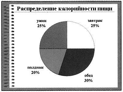 Третий диетолог. Но и этого недостаточно! Для полноценного питания необходимо учитывать энергетическую ценность продуктов. У различных категорий людей потребности в энергии различны и зависят от рода их деятельности. Для учащихся вашего возраста эта потребность равна примерно 2700 ккал в сутки. Эти калории не должны поступать в организм за 1–2 раза: принимать пищу следует 4–5 раз в день. Давайте посмотрим на схему распределения калорийности пищи в течение суток (рис. 3).